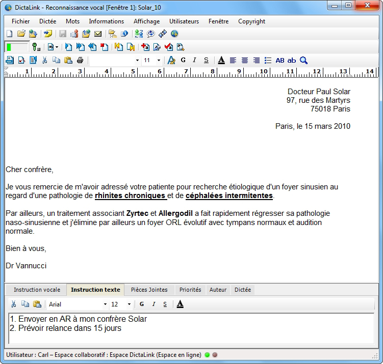 On associe sans peine différentes informations à la dictée : instructions écrites ou orales, commentaires en cours de dictée, pièces jointes, priorités.